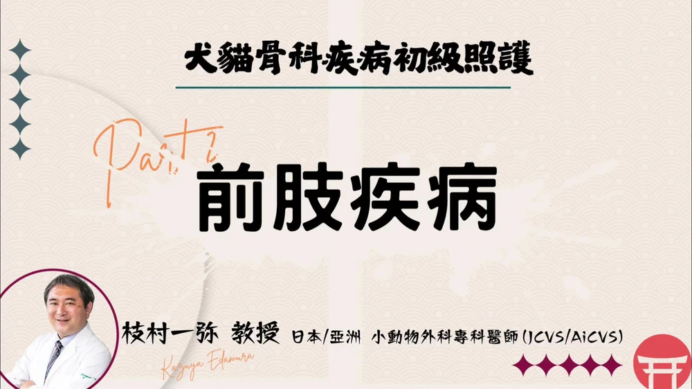 「犬前肢疾病診療實戰——從觸診到影像、從鑑別到治療的一條龍決策! 想把『前肢跛行=難纏』變成『前肢跛行=有章法』嗎?本堂課以臨床實例與動態影像為核心,帶你建立肩肘關節的系統化評估:從步態判讀、特殊觸診,到X光/超音波/CT判讀與手術時機,快速拉高你的診斷與處置命中率。」 課程重點: 🔸 前肢跛行快速定位:點頭步、鴨行、單足抬舉等步態特徵與常見病因地圖 🔸 肩關節OCD實戰:病理機轉、典型影像(肱骨頭尾側平坦化)、肩伸展痛測試與手術時機判斷 🔸 肱二頭肌腱鞘炎:二頭肌腱測試操作要點、超音波動態評估與關節鏡診療策略(藥物/切斷術) 🔸 肩關節不穩定:外展試驗角度門檻(≤35°正常、>50°異常)、「加油姿」X光拍攝與裝具/縫線重建決策 🔸 肘關節發育不良套組:內側冠狀突異常、內髁OCD、肘突癒合不全、關節不協調——正確擺位與CT指徵 🔸 疼痛控制與預後:保守 vs. 手術、復健與體重管理、退化性關節炎分級與長期追蹤流程 適合對象: ✔️ 臨床獸醫師 ✔️ 自行開業院長 ✔️ 欲強化骨科與影像整合判讀的實務從業者 上完本堂課,你將能以標準化步驟判讀前肢跛行、精準運用X光/超音波/CT與關節鏡完成鑑別,妥善選擇保守或手術處置,並以復健與長期追蹤維持療效,全面提升臨床決策的準確度與效率! 課程全部內容(依序: 👉 犬常見的前肢疾病 👉 分離性骨軟骨炎 定義與病態 👉 分離性骨軟骨炎 X光所見 👉 肩關節分離性骨軟骨炎 概要與臨床評估〈movie〉 👉 肩關節分離性骨軟骨炎 影像檢查[X光檢查, CT檢查, 關節鏡檢查]〈movie〉 👉 肩關節分離性骨軟骨炎 外科手術[關節囊切開摘出術, 關節鏡視下摘出術] 👉 肱二頭肌腱鞘滑膜炎 概要與臨床評估[二頭肌腱測試]〈movie〉 👉 肱二頭肌腱鞘滑膜 影像檢查[X光檢查與超音波檢查]〈movie〉 👉 肱二頭肌腱鞘滑膜炎 關節鏡檢查與治療指針[肱二頭肌腱切斷術]〈movie〉 👉 肩關節不穩定症 概要與診斷[內側關節肱骨韌帶, X光檢查, 關節鏡檢查]〈movie〉 👉 肩關節不穩定症 肩關節外展測試〈movie〉 👉 肩關節不穩定症 治療指針[保守療法:支架, 外科療法]〈movie〉 👉 肩關節不穩定症 外科手術[肱二頭肌腱內側轉位術, 內側關節肱骨韌帶重建術, 全關節固定術] 👉 肘關節發育不全 概要 👉 肘關節發育不全 臨床徵候 👉 肘關節發育不全 視診〈movie〉 👉 肘關節發育不全 觸診〈movie〉 👉 肘關節發育不全 內側鉤突分離 影像檢查[X光檢查與CT檢查] 👉 肘關節發育不全 內側鉤突分離的治療指針〈movie〉 👉 肘關節發育不全 肱骨內側髁分離性骨軟骨炎 影像檢查[X光檢查與CT檢查] 👉 肘關節發育不全 鷹嘴癒合不全的診斷與治療 👉 肘關節發育不全 肘關節不相合 影像檢查[X光檢查與CT檢查] 👉 肘關節發育不全 尺骨截骨術 👉 肘關節發育不全 退化性關節炎的評估[嚴重度, 分級分類]〈movie〉